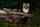 Pine marten looking up behind a log